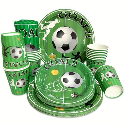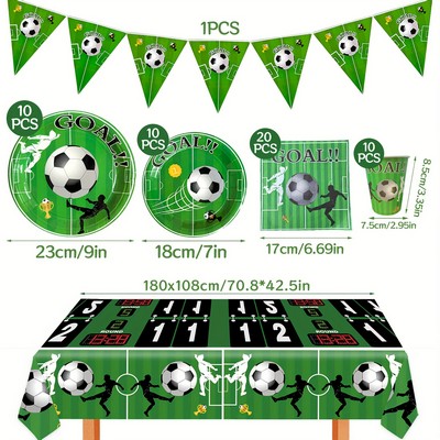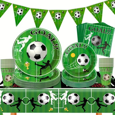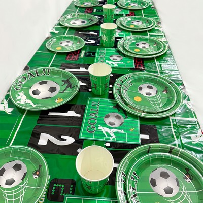 Set od 52 komada jednokratnog party pribora s nogometnom temom savršen je izbor za rođendane i zabave za male ljubitelje nogometa.