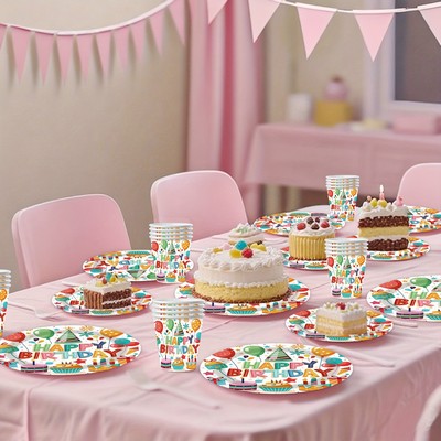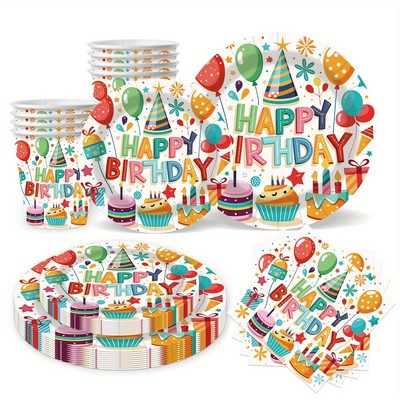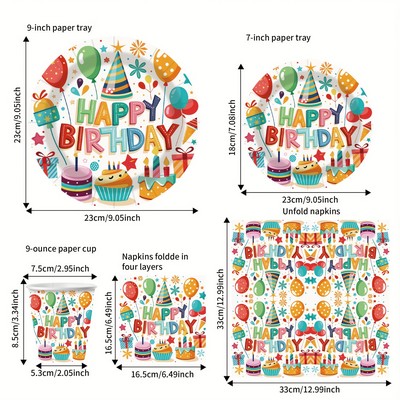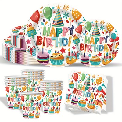 Happy Birthday set tanjura, čaša, salveta i stolnjaka odličan je izbor za rođendanske zabave.